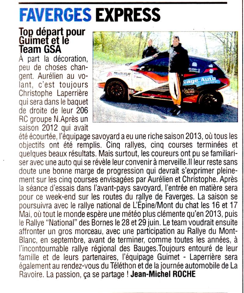 le Dauphiné Libéré Avril 2014 Voir l'article |